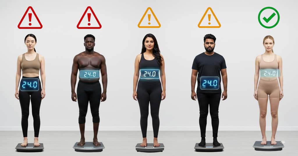 Individual variation within ethnic groups remains substantial. Not every Asian individual with a BMI of 24 faces an elevated health risk. Not every White individual at BMI 26 avoids metabolic complications. BMI provides population-level screening, not individual diagnosis. Body composition, fat distribution, and metabolic health markers provide additional essential information beyond BMI alone.